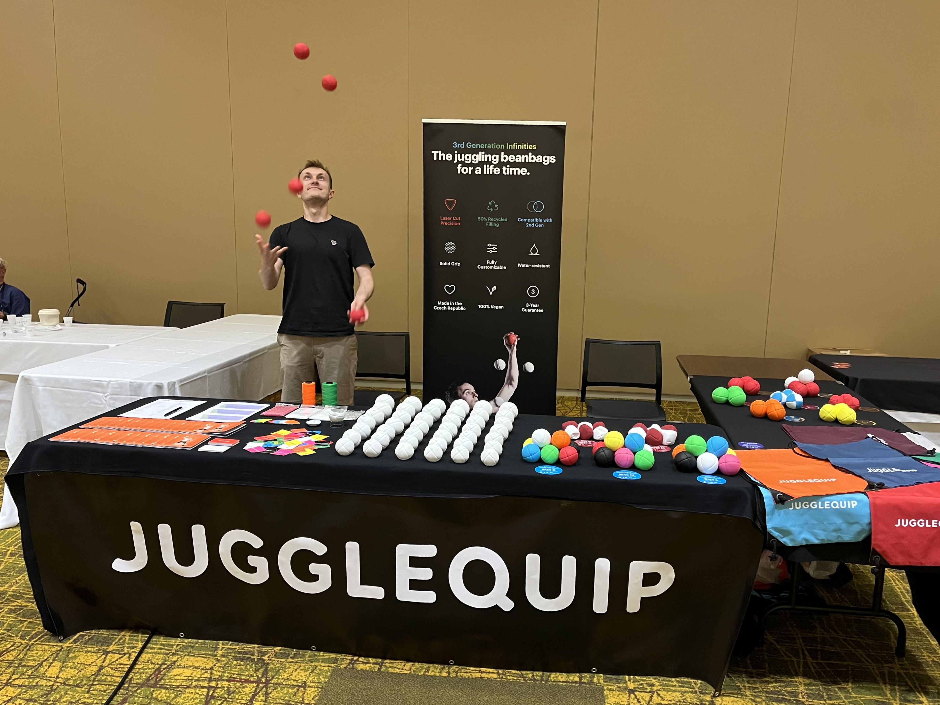 Kolem roku 2013 jsem se začal věnovat vývoji míčků na žonglování, protože z těch, co byly tehdy na trhu, mi žádné nevyhovovaly. Dnes vyrábíme třetí generaci míčků Jugglequip Infinities, prodali jsme jich desítky tisíc a žonglují s nimi jména jako Domenyk La Terra, Wes Peden, Spencer Androli, Gandini Project nebo Jonglissimo. Nejvíc hrdý jsem na to, že všechny míčky vyrábíme v ČR.