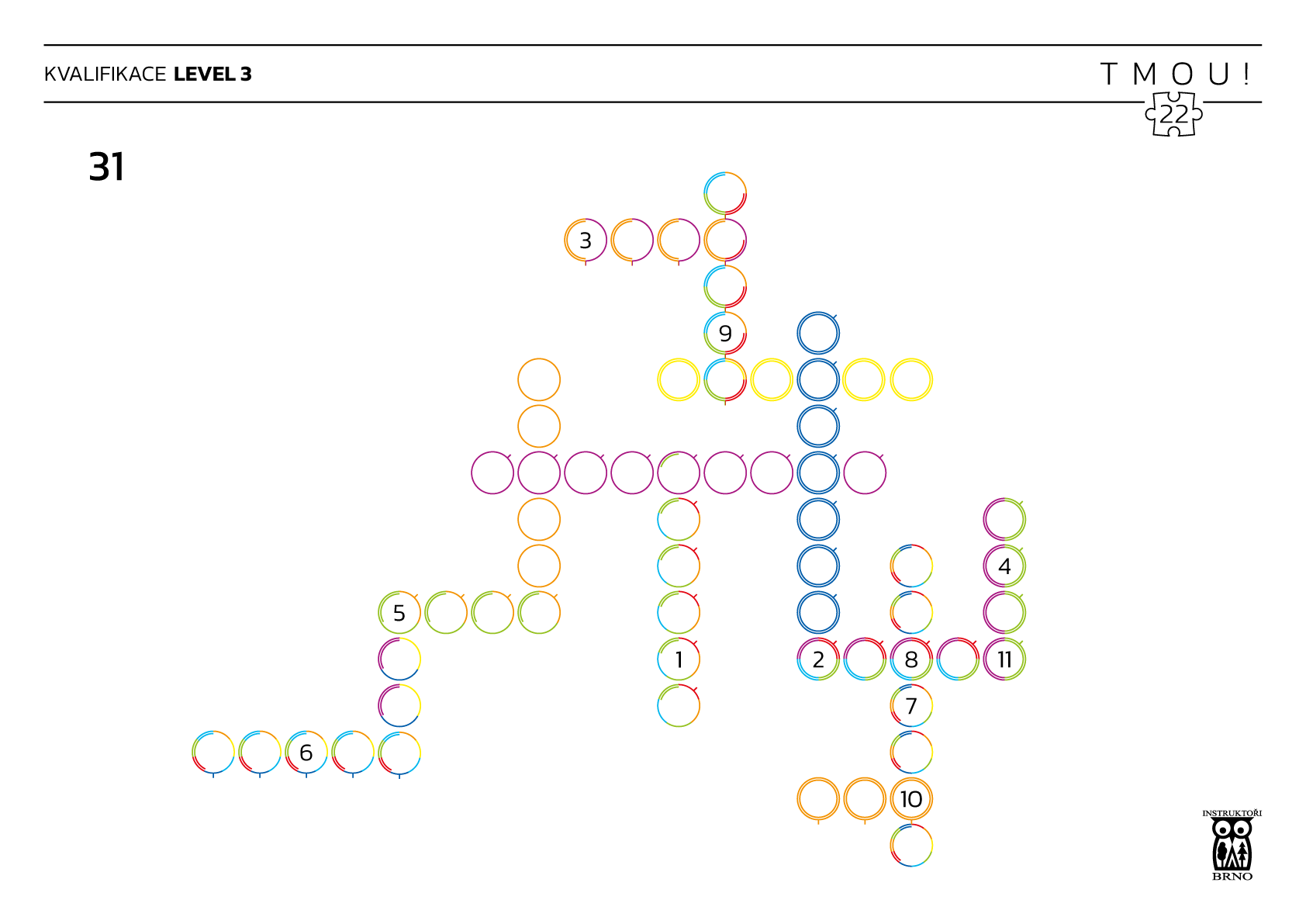 Slov je 6+4+4=14, což je počet vzorů podstatných jmen. Vzory musíme vepsat v příslušném tvaru, který odpovídá všem kombinacím pád x číslo, které jsou vyznačené. To nám jednoznačně umožní celý kris-kros popsat a v polích označených čísly čteme postupně tajenku CHRÁM SV ANNY.
