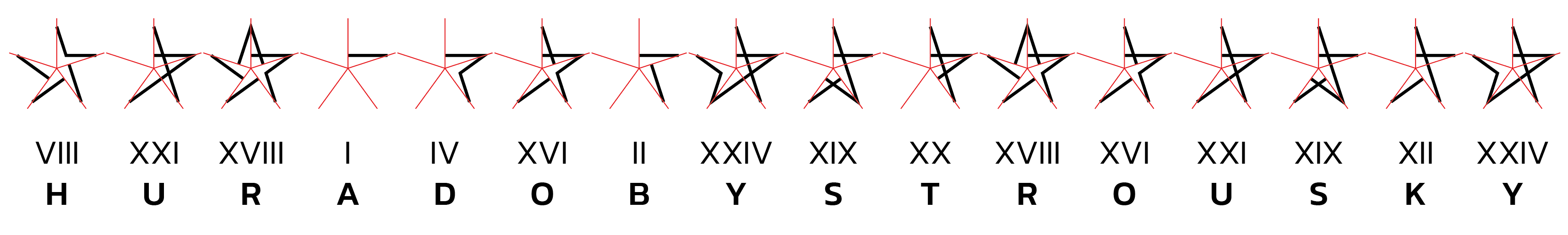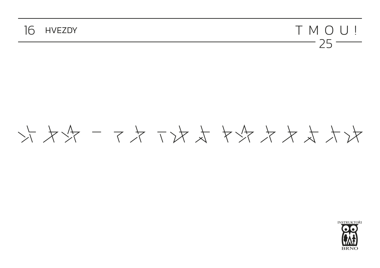 Ve hvězdách najdeme římská čísla – hvězdy stačí rozdělit pěti polopřímkami vedoucími ze středu hvězdy a procházejícími vrcholy hvězdy a písmena X, V, I vykouknou. Přečteme tajenku HURADOBYSTROUSKY a jdeme do blízkého centra volného času Bystrouška v Bystrci.