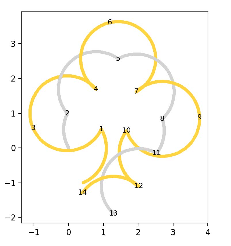 Napadne nás, že 2 a 20 by mohly být mince. Skutečně, dvoukoruna má tvar 11úhelníku a dvacetikoruna 13úhelníku. Popíšeme tedy strany (fajnšmekři vrcholy) dvoukoruny písmeny A–K a dvacetikoruny L–Z, zorientujeme proti sobě písmena K a L (jak nám napovídá první dvojice) a „naučíme se“ mince střídavě kutálet podle šipek. Kutálíme tedy vždy mincí, která má v dalším kroku mezeru.