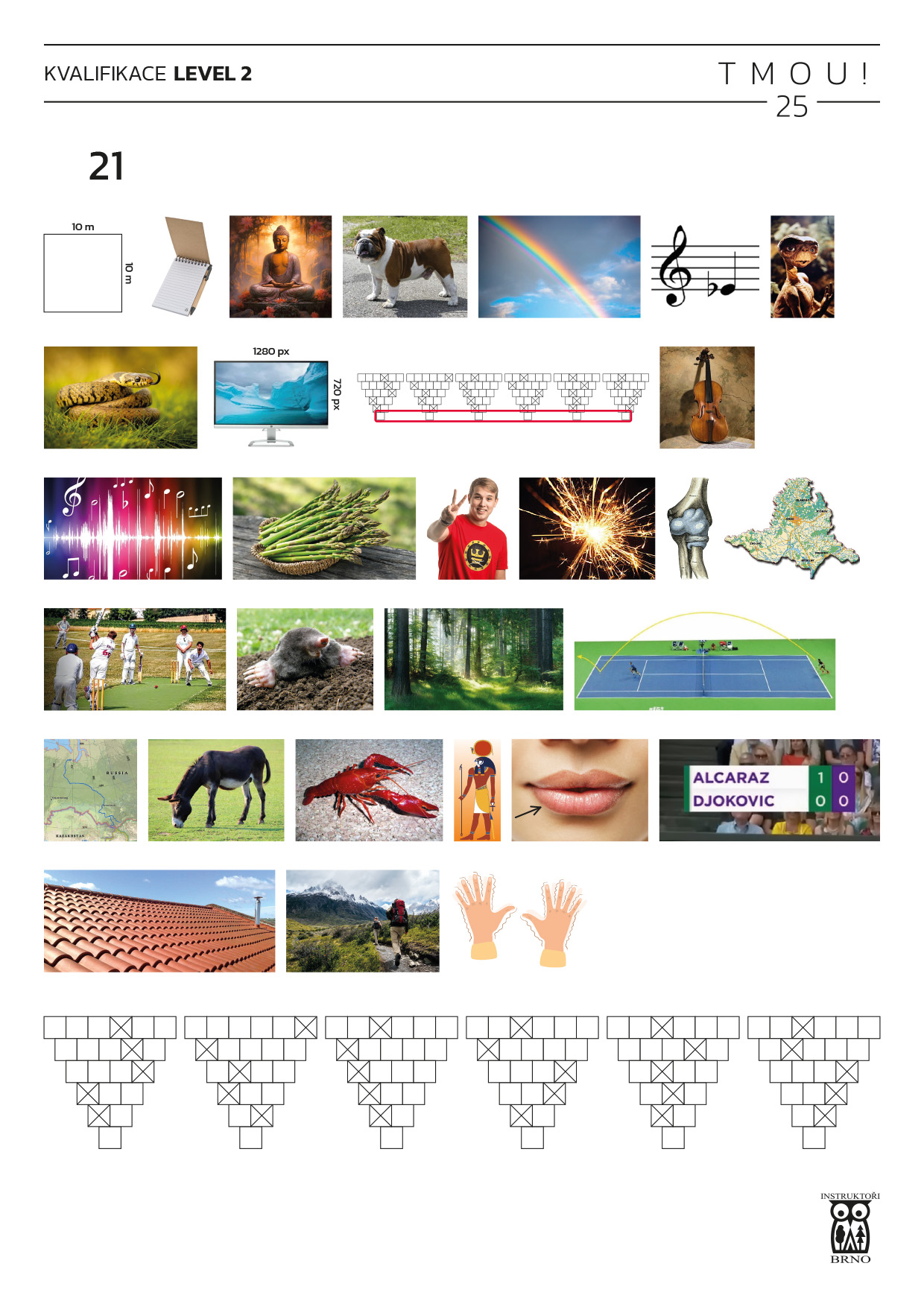 Na hře se používala TMOU 25 pomůcka a 25písmenná abeceda s písmenem Ch a bez písmen Q a W; Ch se tedy vždy počítá jako jedno písmeno. Řešením je heslo.
